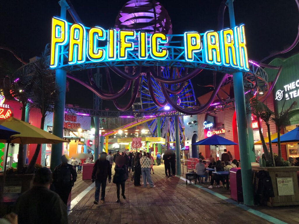 サンタモニカ・ピアにある「パシフィック・パーク」は、1996年に開園した、桟橋の上に位置する全米でも珍しい遊園地です。特に太陽光発電で動く観覧車「パシフィック・ホイール」は、この地の象徴となっています。